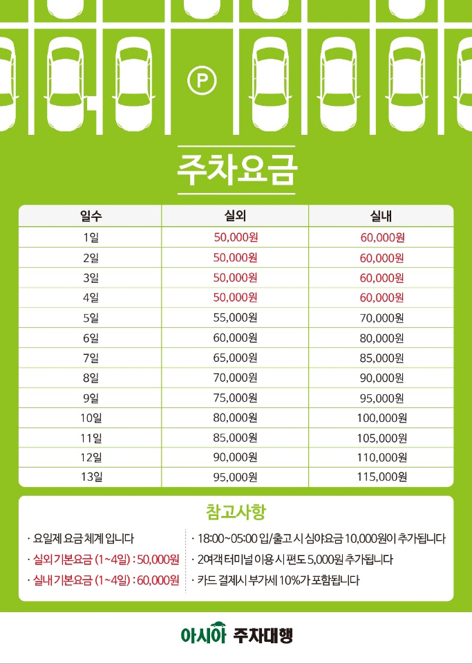 1,2여객터미널 주차요금 안내